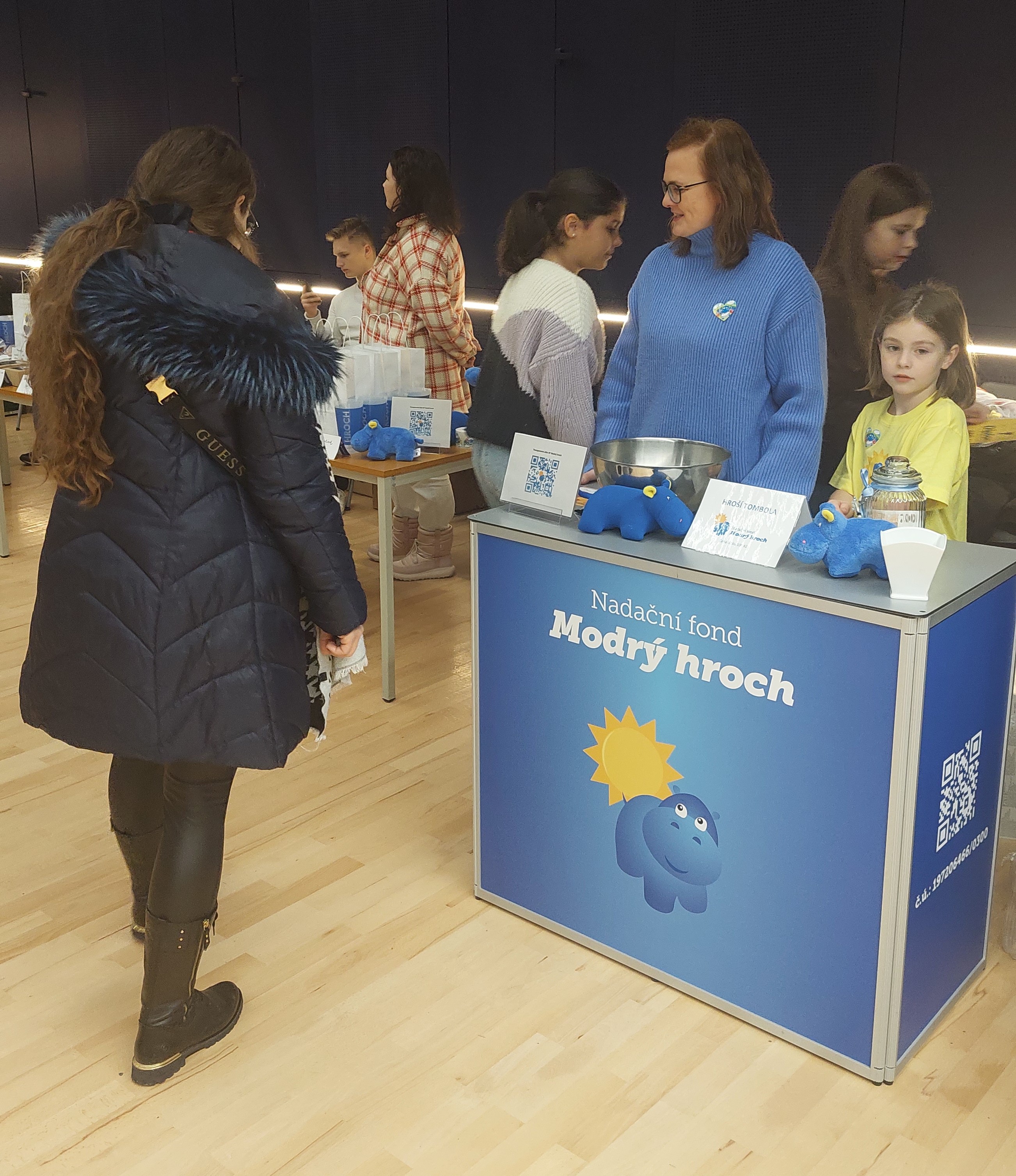 Adventní odpoledne s Modrým hrochem byla krásná akce plná radosti, zábavy a dobročinnosti. Bazárek, dětské vystoupení a vernisáž obrazů, loutkové divadlo nebo planetárium. Připravena byla také bohatá tombola a další překvapení. Společně jsme získali úžasných 21 800 Kč na dárky pro děti, které stráví vánoční svátky v nemocnici. Velké díky patří všem dětem ze Základní školy Jungmannova Kuřim a Základní umělecké školy Kuřim za jejich krásná vystoupení, úžasné obrazy a dobrovolníkům, kteří nám celé odpoledne pomáhali. Děkujeme také všem, kteří se zapojili do organizace vystoupení, vernisáže, dílniček, obchůdku. Úžasný doprovodný program nám zcela zdarma poskytli Planetárium Morava a Divadlo Bez Pravidel.