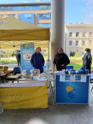 Naši dobrovolníci a děti ze základní školy napekli domácí cukroví a stánku bylo možné zakoupit také naše oblíbené hroší ponožky a plyšové hrošíky.