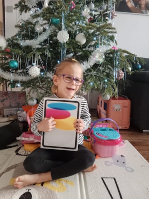 A právě kvůli Amálce se Vám ozývám a s dovolením vám píšu. Amálka se narodila v 28tt těhotenství a bohužel si nese trvalé následky. V pěti letech začíná zkoušet první kroky, zatím nemluví a je celkově hodně opožděná. Narodila se hluchá a s poruchou zraku. Je zaimplantovaná, a díky bohu za to. Dokáže reagovat na zvuky a rozumí jednoduchým větám. Její koukání ji ovšem také do jisté míry limituje, má krátkou fixaci a vyšší dioptrie. Obrázky jsou pro ni náročné sledovat.