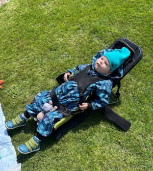 Davídkovi by nyní velmi pomohla skládací židlička Travel sit, kterou s sebou může vzít na cesty. Zajistí