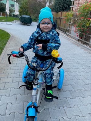 rád pohyb, největší radost mu dělá jízda na tříkolce v přírodě a plavání.