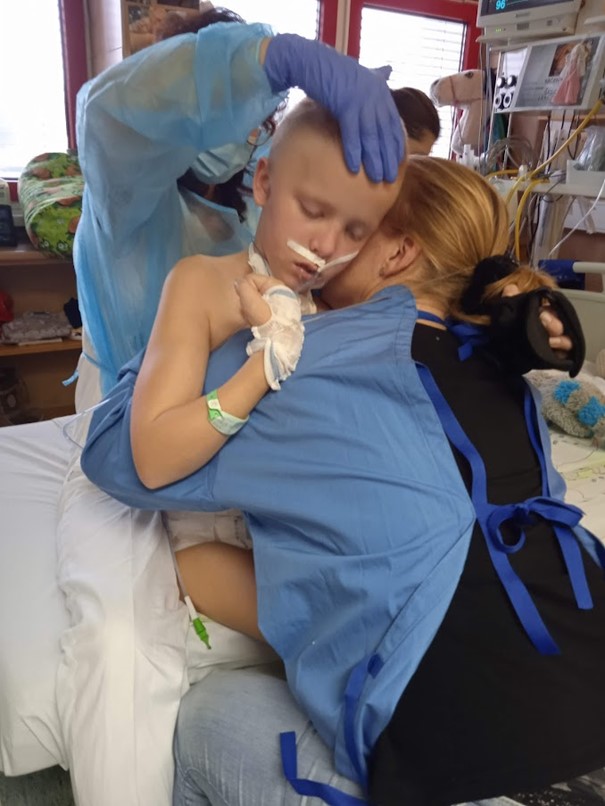 " Kačenku srazila dodávka doručovacího kurýra... Dostala první pomoc od souseda, přijela sanitka a následně vrtulník. Následoval nespočet neprospaných nocí plných slz, trápení a modliteb, které jsme doposud neznali. Následující dny Kačenka upadla do kómatu následkem velmi vážných poranění mozku, které vedlo k poškození 3. stupně, dekortikační rigiditě (která vede k trvalým neovladatelným křečím v končetinách), dále DAP (difúzní axonální poškození), ve kterém setrvala 3 měsíce. Během této doby absolvovala léčbu v hyperbarické komoře a další operaci. Poté se začala zotavovat a začaly se dít zázraky zázraků. Nikdo tomu už nevěřil, Kačka se nejen probudila z kómatu, které proběhlo neznatelně, ale postupně začala i reagovat.