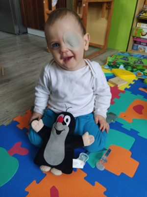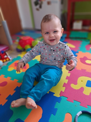 Původní prognóza naznačovala, že bude mít velké potíže s příjmem potravy a bude pouze ležet. V téměř dvou letech je to veselý chlapeček, rehabilituje se metodou Bobath a dosahuje malých pokroků. Sedí, postaví se a trénuje zrak, má rád světelné a zvukové hračky. Slovní zásobu má omezenou a učí se nová slova a gesta.