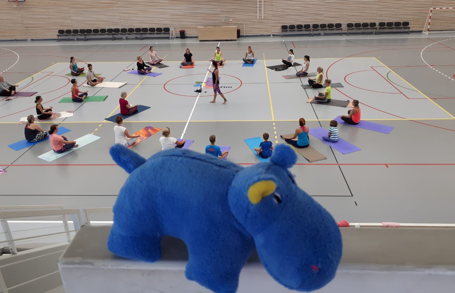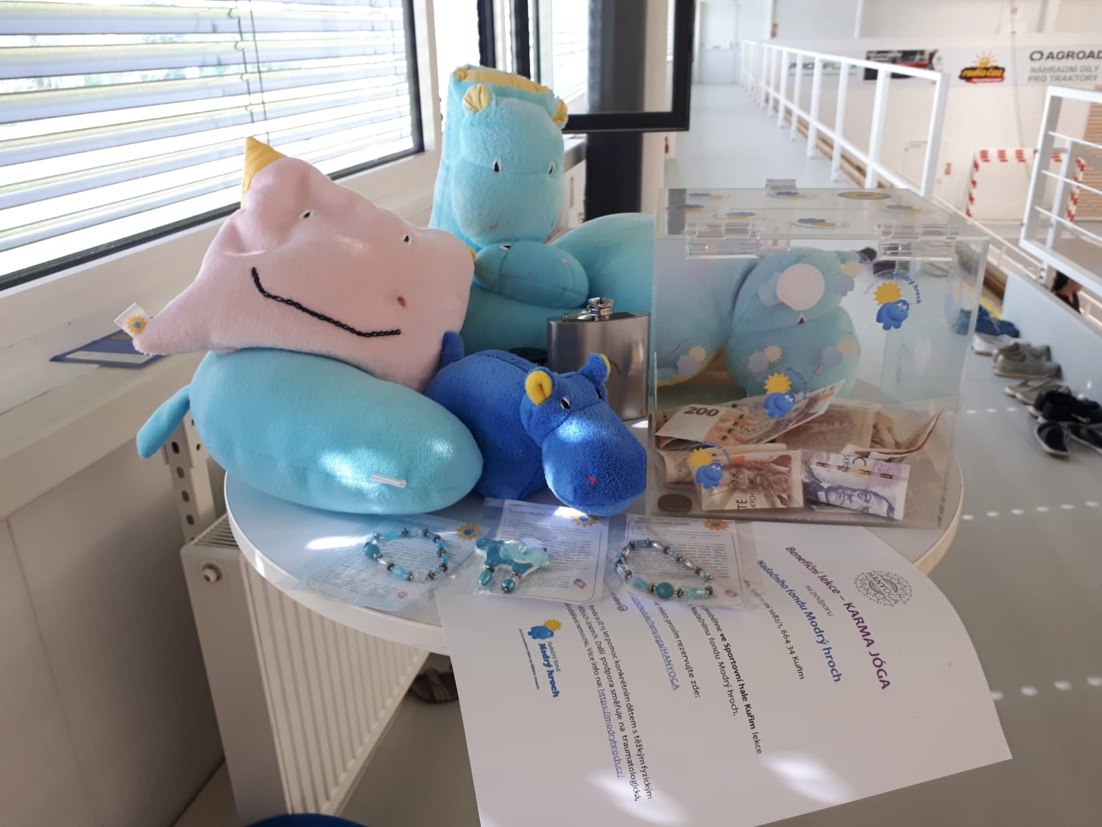 V neděli dopoledne 30. srpna proběhla ve Sportovní hale Kuřim benefiční lekce – KARMA JÓGA pod vedením paní cvičitelky Hany Flochové. Pořadatelem bylo jógové studio HANYOGA a benefiční hodiny se zúčastnilo téměř 30 cvičících, kteří se mohli „protáhnout“ v nové krásné sportovní hale.