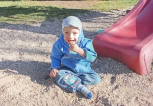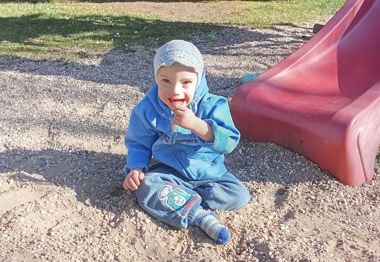 Ač mu bylo v září 5 let, odpovídá vývojem na 2 roky, má 11 kg, nemluví, nekouše, musí mít přizpůsobenou stravu, nechodí, leze po čtyřech, má plíny, je odkázán na péči 24 hodin denně.