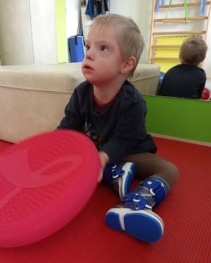 K Downovu syndromu se nám přidala porucha štítné žlázy, tudíž má problémy s přibíráním, má kloubní hypermobilitu a hlavně svalovou dystrofii.